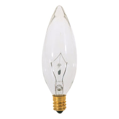 15 Watt BA9 1/2 Incandescent - Clear - 2500 Average rated hours - 114 Lumens - Candelabra base - 130 Volt