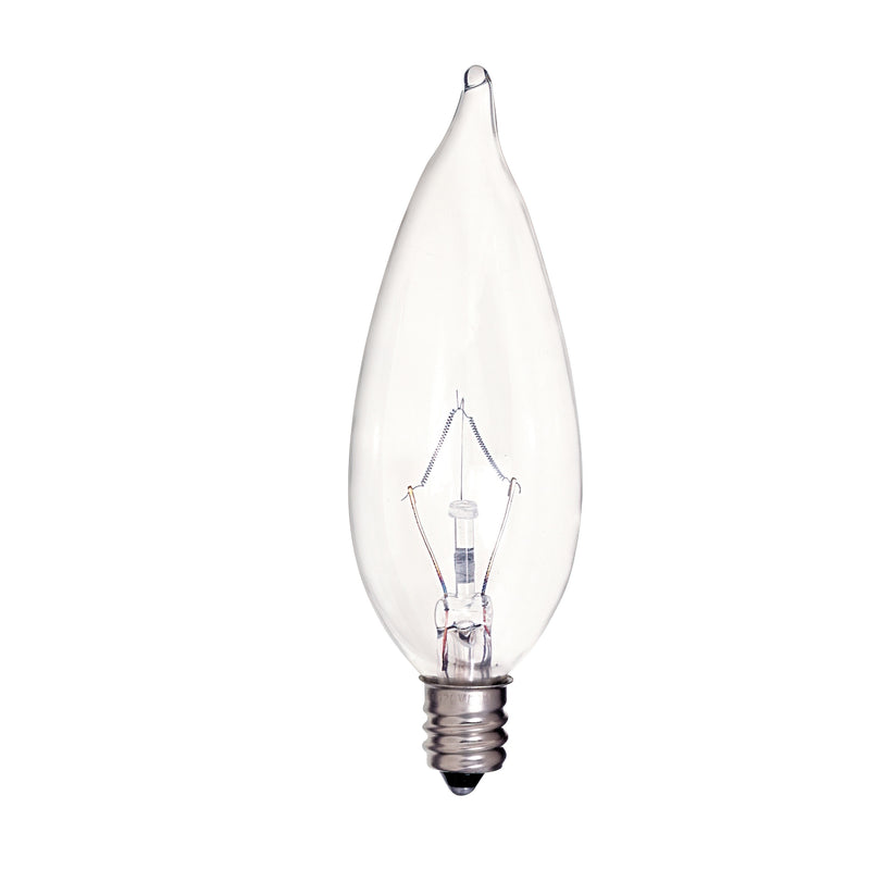 25 Watt CA9 1/2 Incandescent - Clear - 2500 Average rated hours - 212 Lumens - Candelabra base - 120 Volt